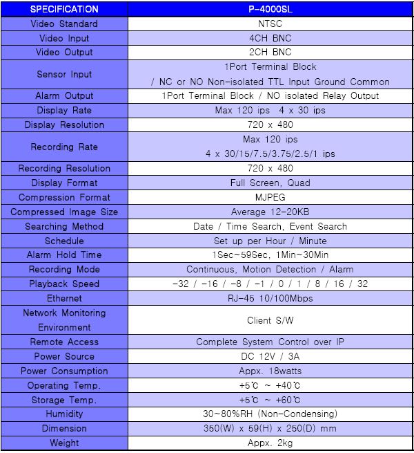 ☞ 4채널 MPEG4 DVR