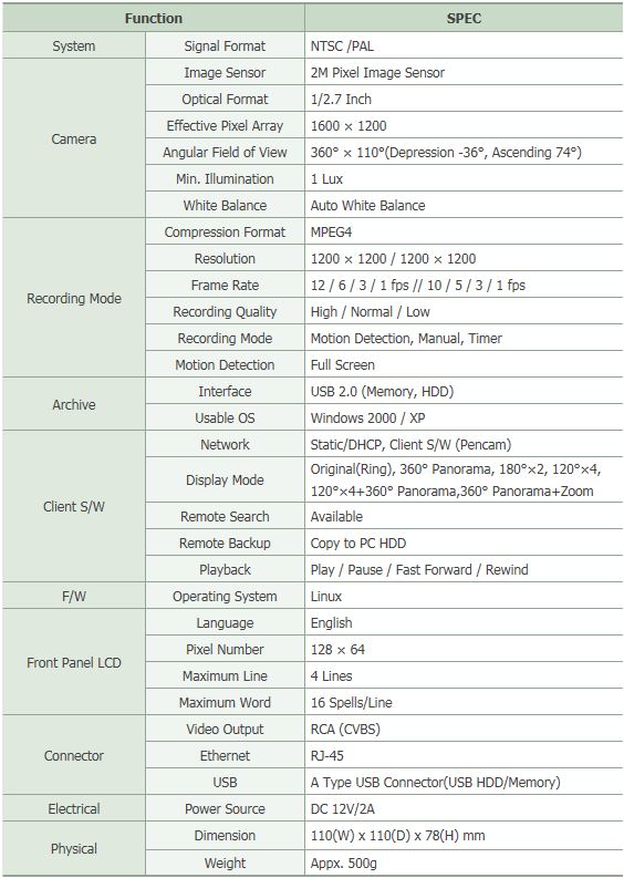 ☞ 360도 영상을 촬영할 수 있는 200만화소 카메라