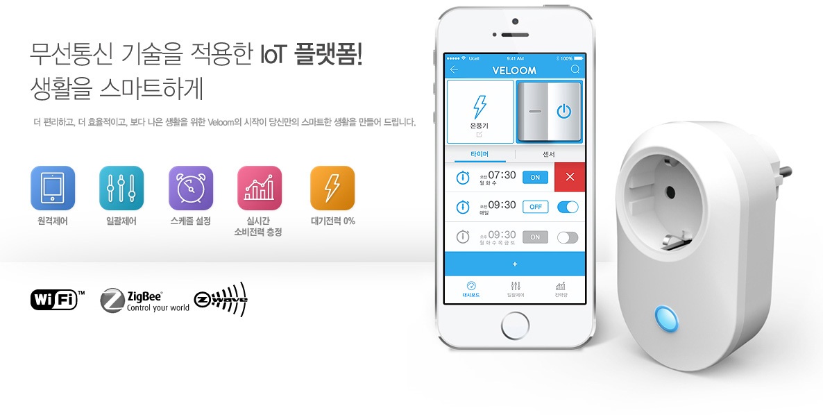 스케줄 설정 : 스마트폰 앱을 사용하여 예약 설정한 일정/시간에 가전기기의 가전기기의 On/Off 제어 할 수 있습니다.