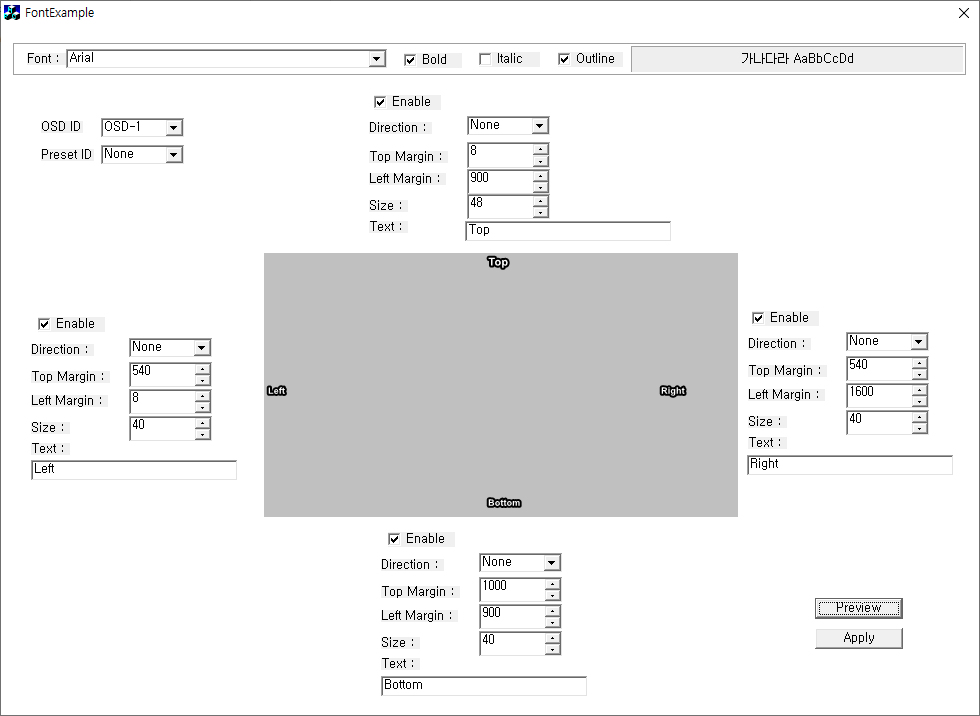 4방향에서 입력 가능한 OSD 제작용 툴
